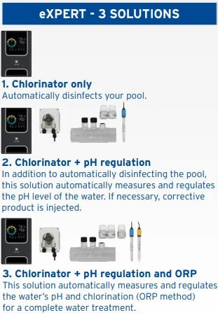 eXPERT sikrer omfattende vandbehandling takket være vandbalancestyring (pH-værdiregulering) og automatisk klorindholdskontrol (redoxregulering).